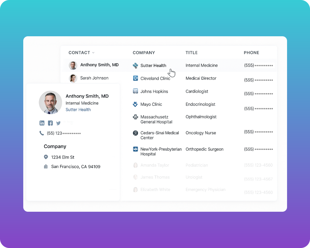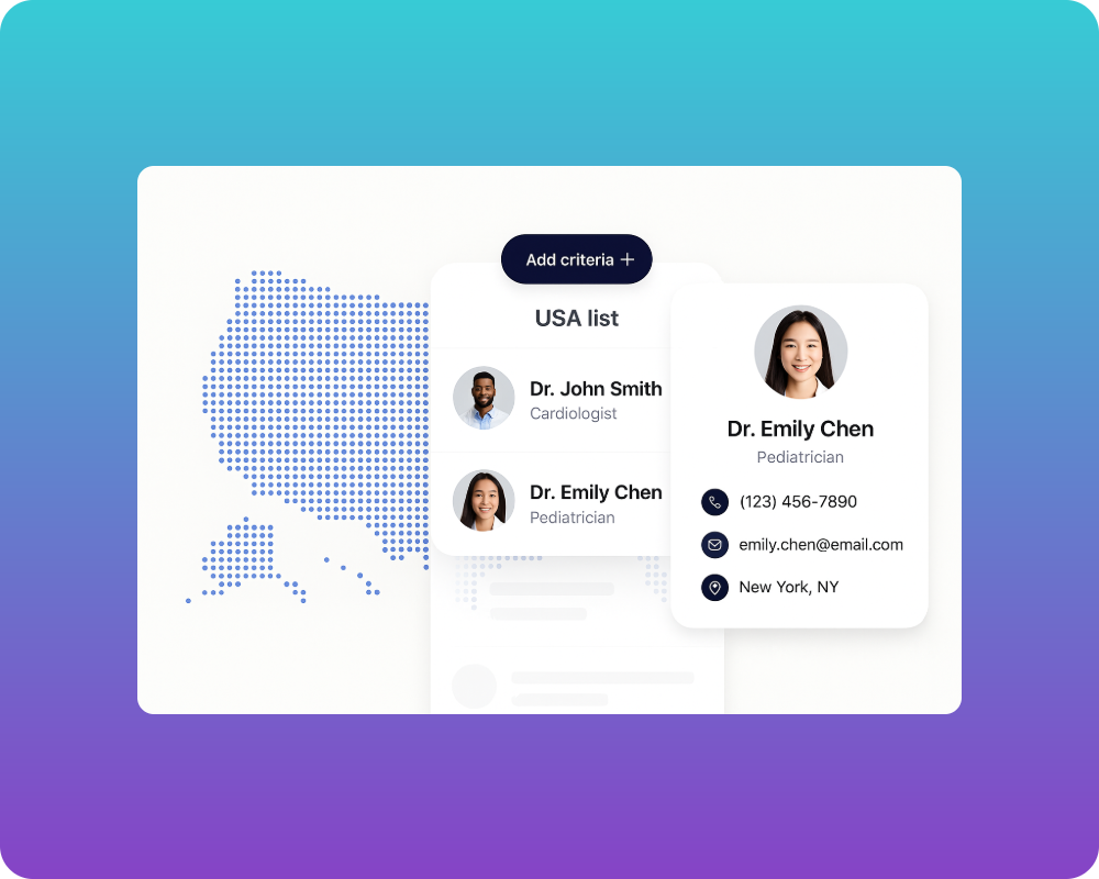 You can target your campaigns based on different specialties, job titles, facility types, or organization sizes to ensure better results.